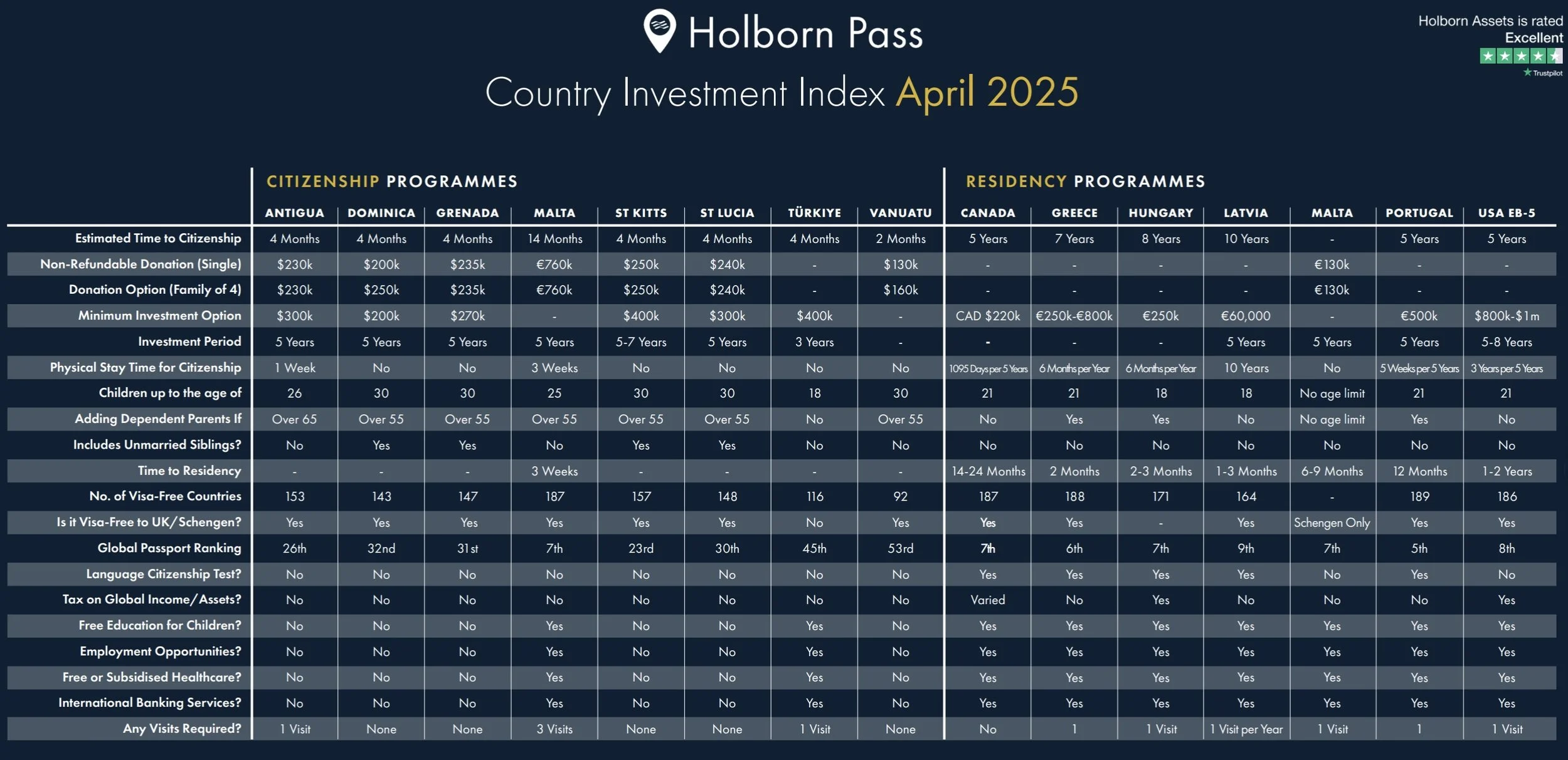 Processing times range from 2 months (Vanuatu) to 12 months (Malta), depending on the program.